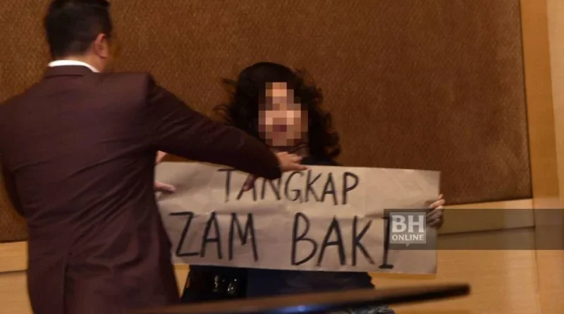 KUALA LUMPUR: Ucapan Ketua Pesuruhjaya Suruhanjaya Pencegahan Rasuah Malaysia (SPRM), Tan Sri Azam Baki di Pusat Dagangan Dunia Kuala Lumpur (WTC) hari ini terganggu apabila dua individu bertindak melakukan protes semasa acara berlangsung.